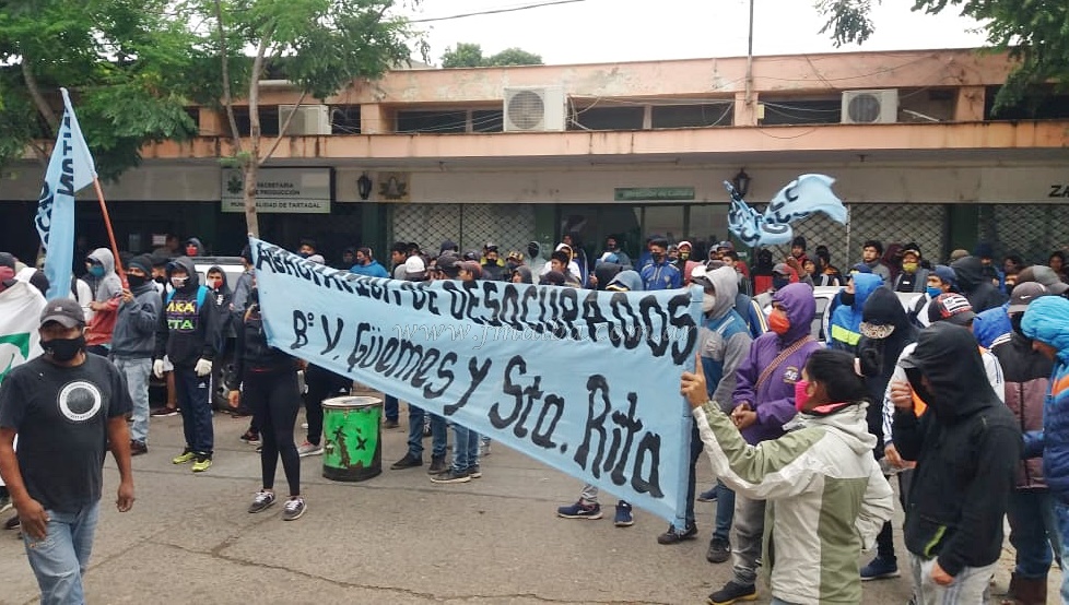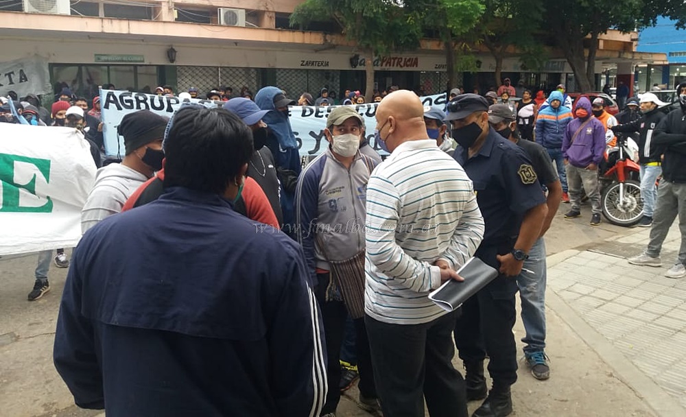 La multitud partió a las 9 horas desde la explanada de la Estación de Trenes hacia la Municipalidad, donde exigieron una reunión con el intendente Mario Mimessi. Por su lado, el secretario de gobierno Santiago Vargas dijo que el número de cooperativas han incrementado desde que asumió el nuevo gobierno, de 16 a 40 y no alcanza la disponibilidad de obras para todos.