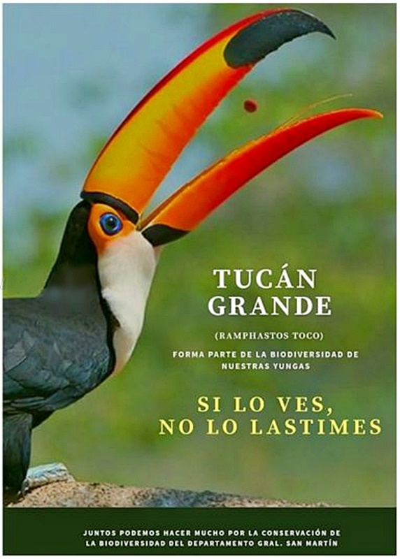 Los infractores a las normativas, ya que mantengan cautivas o den caza para venta a los animales silvestres amparados, serán sancionados de acuerdo con lo previsto en la Ley 5513, de protección a la fauna. Además del tucán, otras especies animales consideradas como “Monumento Natural” en la provincia de Salta son el guacamayo verde, el tapir y el yaguareté.
