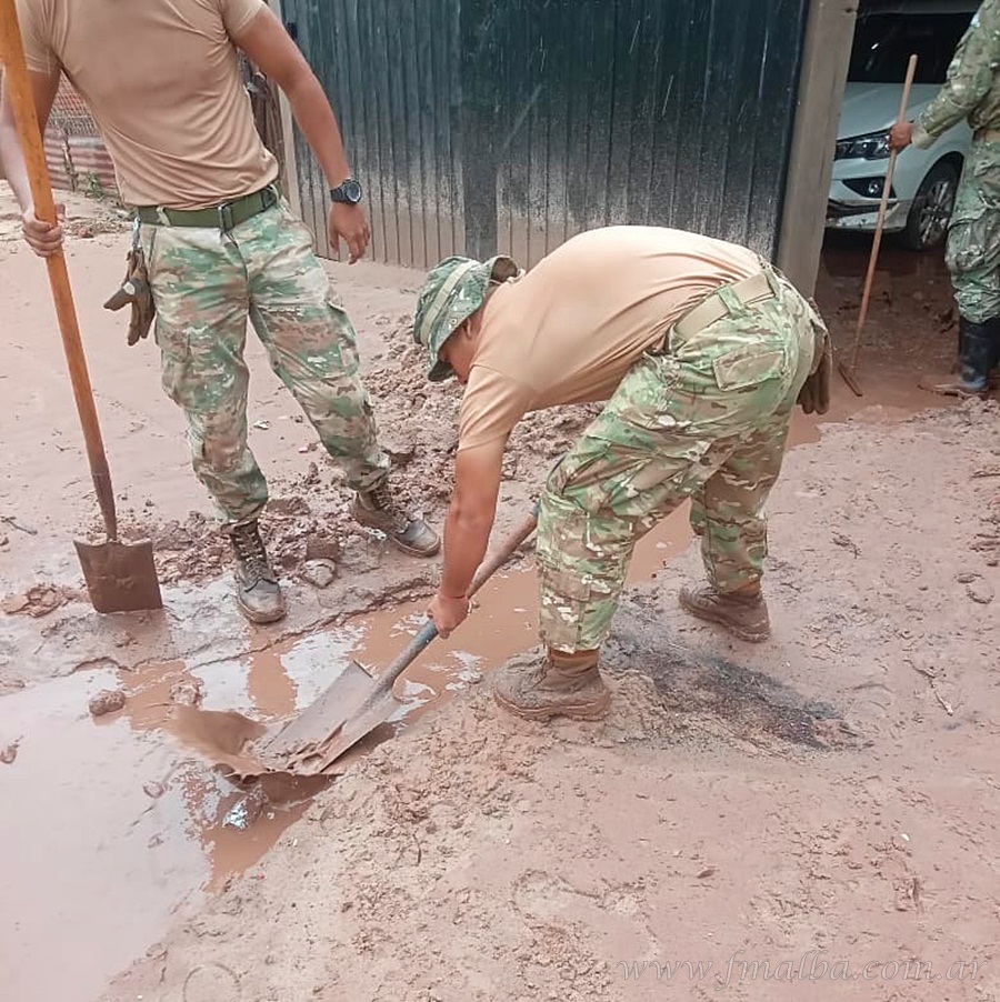 El Ejército Argentino informó que, ante la emergencia declarada en Aguaray por la gran cantidad de agua caída en fuertes tormentas, efectivos del RIMte 28 se traladadaron a las personas evacuadas (10 familias) por las inundaciones producto de la crecida de una cañada, a raíz del deslizamiento registrado en la zona del Cerro de Iquira. En el sector al pie del lugar, los soldados retiraron sedimentos y gran cantidad de árboles y ramas arrastrados por el agua.