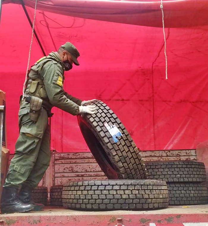 En un primer procedimiento de control de rutina efectuado a la altura del km 1.466 sobre Ruta Nacional 34, los efectivos del Escuadrón 54 detuvieron la marcha de un camión con semirremolque. Al momento de completar con inspecciones de rigor, los gendarmes detectaron nueve cubiertas de origen extranjero. Solicitada la documentación que avalara el traslado, el conductor del rodado reconoció que no las poseía. De consulta al magistrado interviniente, éste dispuso el decomiso de la mercadería, aplicando infracción a la Ley 22.415 “Código Aduanero”.