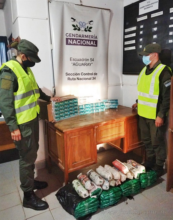 Seguidamente realizaron un inmediato rastrillaje en la zona montuosa aledaña, donde finalmente hallaron 430 paquetes de cigarrillos y 27 kilos de hojas de coca en estado natural; dentro de bultos similares a los que se encontraban en el rodado. El magistrado que intervino en la causa dispuso el secuestro de toda la mercadería.