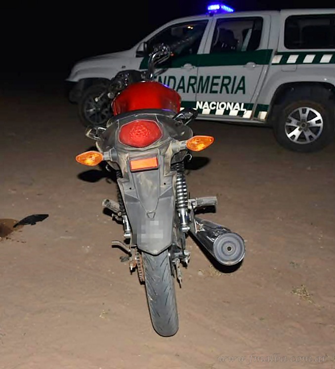 Dos hombres fueron seguidos por una patrulla del Escuadrón 54 luego que ignoraran el aviso de “alto” en momentos que transitaban a lata velocidad por el “Camino del Cementerio”, en horas de la noche y a bordo de una moto de gran cilindrada marca Honda, sin patente. Unos metros adelante ambos cayeron del rodado y abandonando la moto como la carga que llevaban con ellos huyeron hacia la vegetación del monte.