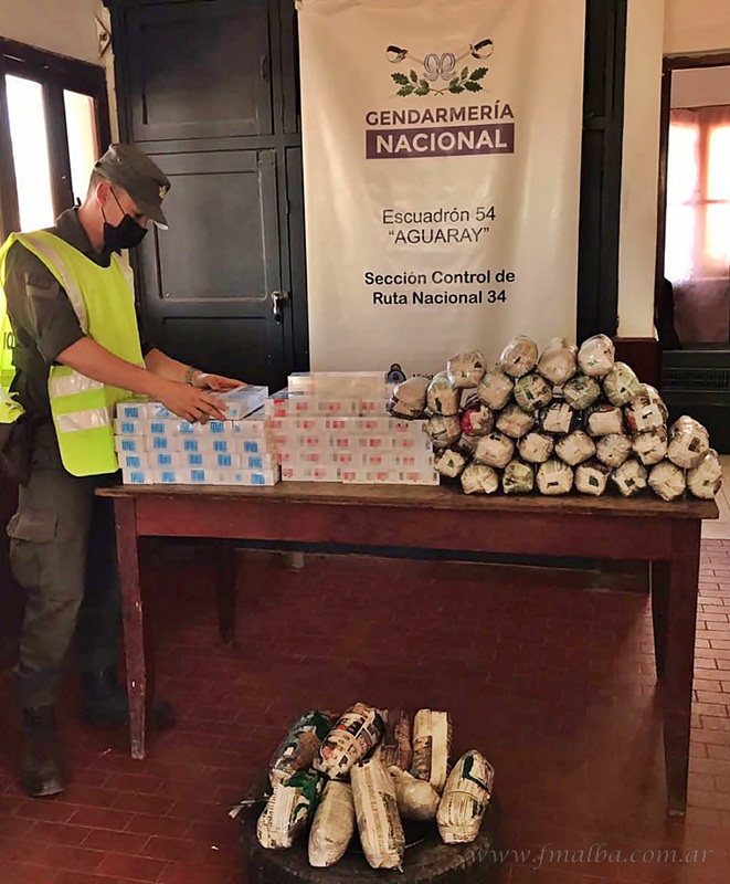 La carga de hojas de coca se descubrió en el control de rutina efectuada en el kilómetro 1.466 de la Ruta Nacional 34. Una pareja, compuesta por un hombre y una mujer, viajaban a bordo de un vehículo marca Fiat modelo Siena. En primer momento, los gendarmes encontraron en una caja y en una mochila 490 paquetes de cigarrillos de origen extranjero y nacional.