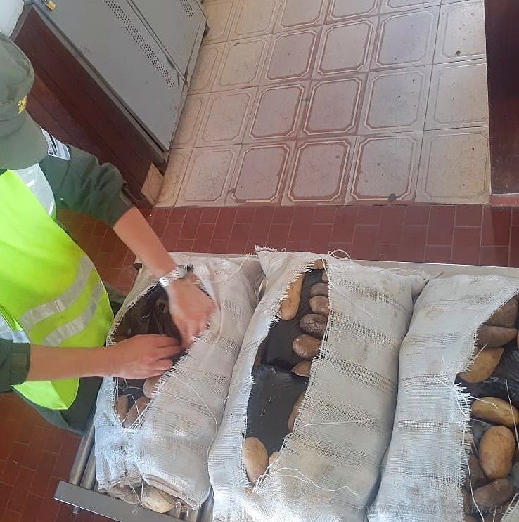 Al profundizar el control descubrieron, mediante el uso del scanner, que en el interior de tres bolsas de papas y en la rueda de auxilio del vehículo ocultaban 20 kilos de hojas de coca en estado natural. Tras el hallazgo, todos los productos fueron decomisados en totalidad y se dio intervención al personal de la oficina de AFIP-DGA.