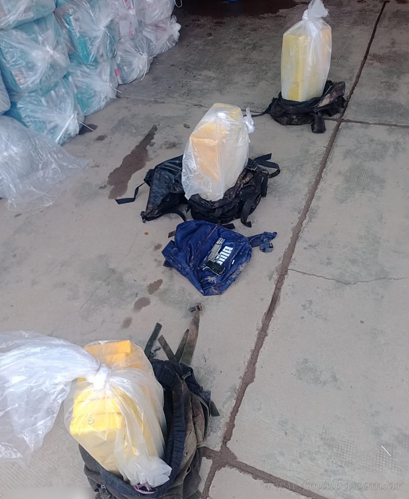 A la prueba de campo Narcotest, el contenido de los ladrillos arrojó positivo para cocaína, carga de peso total de 37 kilos 674 gramos. La Fiscalía dispuso el secuestro de la droga, del vegetal, de la mercadería de contrabando y del arma, en infracción a las Leyes N° 23.737, 22.415 y 20.429, se informó.