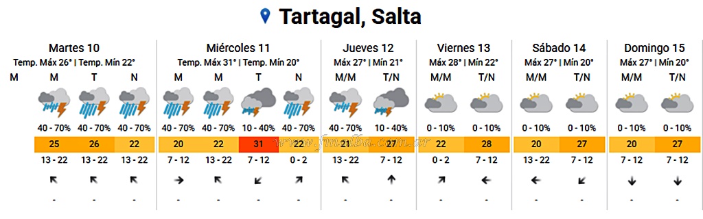 » Proyección para los próximos días en Tartagal, Salta.