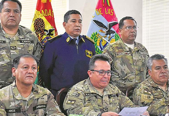 En tema relacionado, los ex jefes militares; Gral. Gonzalo Terceros (Fuerza Aérea) y el Almirante Palmiro Jarjury (Armada); dirigieron una carta al presidente Luis Arce, en la cual denuncian “persecución judicial indebida” y manifiestan que su único error fue “obedecer al ex Comandante Williams Kaliman para posar junto a él en la foto de fecha 10 de noviembre de 2019, al momento de la lectura del comunicado, del cual desconocíamos su contenido”, cuando se sugirió la renuncia de Evo Morales a la presidencia del Estado Plurinacional de Bolivia. (El Deber.bo/Erbol)