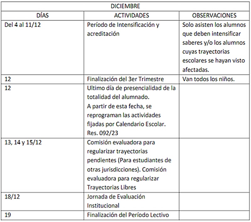 La recuperación de clases, se aclara, será trabajo conjunto entre escuelas y aprobaciones por parte de la Supervisión. El cronograma presentado por Educación establece: