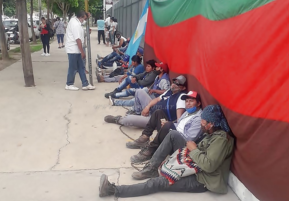 Se sumó también un grupo de originarios de General Mosconi (había un representante encadenado entre los seis) señalaba Durán, recordando que no son recibidos desde hace un tiempo por el intendente Mario Mimessi. “Hemos hablado ya con el fiscal Rafael Lamas para que intermedie (…) tenemos todo en regla, como nos pedían, queremos trabajar y también hacer uso de nuestra tierra”, declaraba.