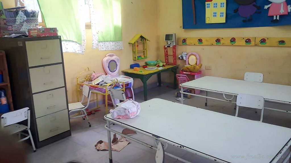 “Al volver a clases, teníamos la intención de continuar repartiendo (…) pero nos encontramos conque habían roto el candado del portón y que habían ingresado al jardincito, llevándose muchas cosas”, informó una de las maestras. “Vivimos cambiando los candados, y ahora que tenemos la tapia (cerrado perimetral en toda la escuela) han aumentado los robos (…) cuando estaba el alambrado, los vecinos podían ver lo que pasaba y avisar si notaban gente dentro de la escuela”, continuó la docente.