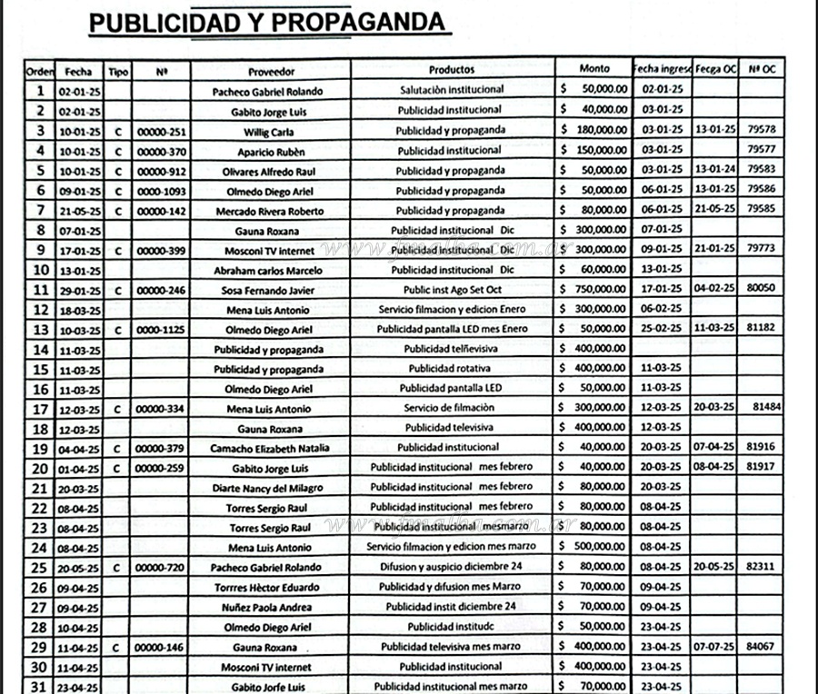 La ex concejal Silvia Zabala expuso un resumen de gastos del Concejo Deliberante de Tartagal y pago de pauta institucional a medios de comunicación y periodistas de la ciudad, el departamento San Martín y Provincia. Los montos varían y el planteo surgió a raíz de notas ingresadas por proveedores al Concejo por deuda de meses.