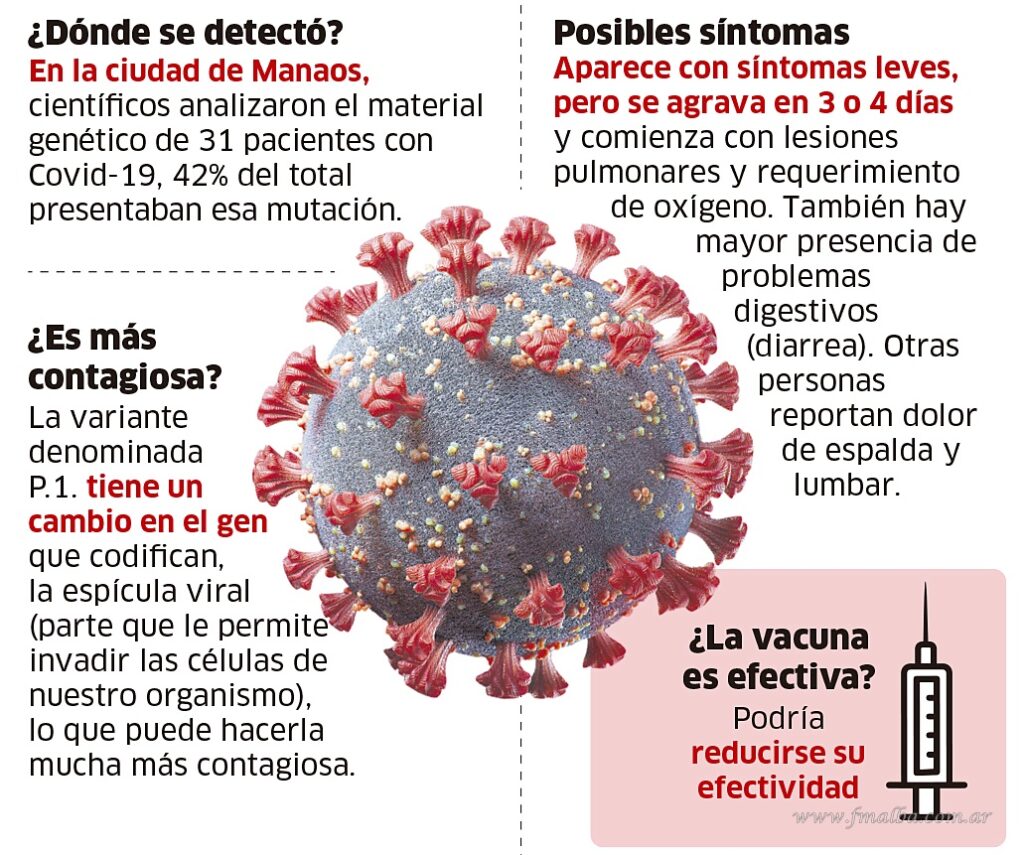 La variante “Manaos” del Covid19 preocupa a las autoridades sanitarias debido a que es capaz de infectar a personas que ya pasaron el virus anteriormente y su carga viral puede llegar a ser 10 veces mayor que la normal, es decir, los efectos pueden presentarse de forma más intensa en el paciente. La última variante del coronavirus en surgir, es la que surgió en Manaos; cepa de la cual provincias como Chaco y Formosa han confirmado casos.