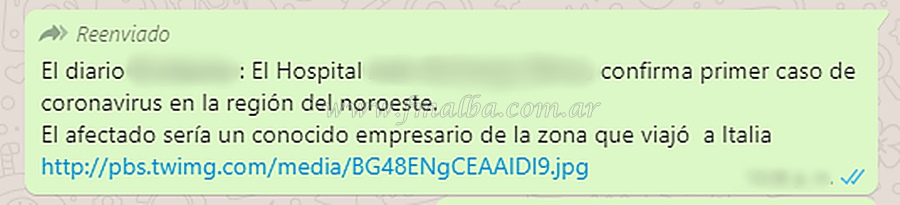 »Mensaje que se viralizó en las últimas horas en Salta, junto a un video que se decía grabado en el Hospital del Milagro de la Capital. Se pidió a la población que se eviten actos irresponsables (Imagen: captura de pantalla)