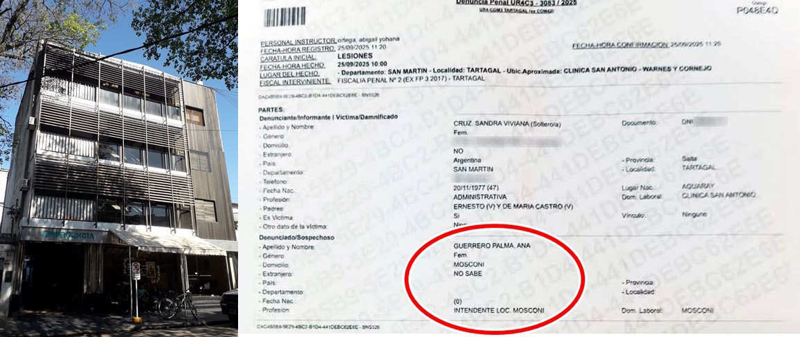 Una empleada administrativa de clínica privada de Tartagal, radicó una denuncia contra la primera mandataria de Gral. Enrique Mosconi por lesiones; ayer jueves en horas de la mañana, luego de un grave incidente ocurrido. De acuerdo con los primeros datos se trataría de un hecho pasional.