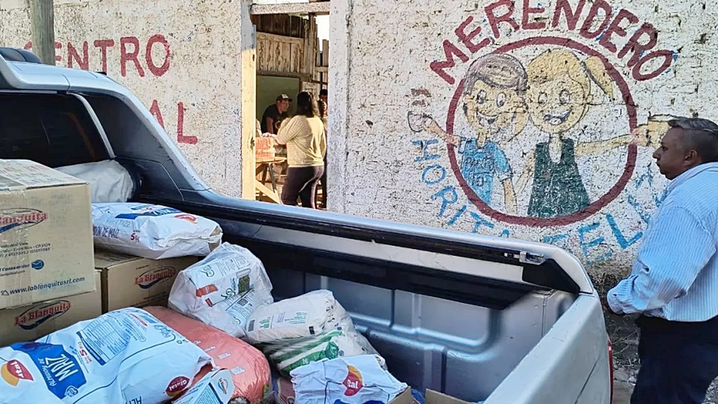 Las acciones se desarrollan a través de la Secretaría de Políticas Sociales, que se encarga de la distribución de alimentos secos para estos espacios sociales de diversos barrios de este departamento.