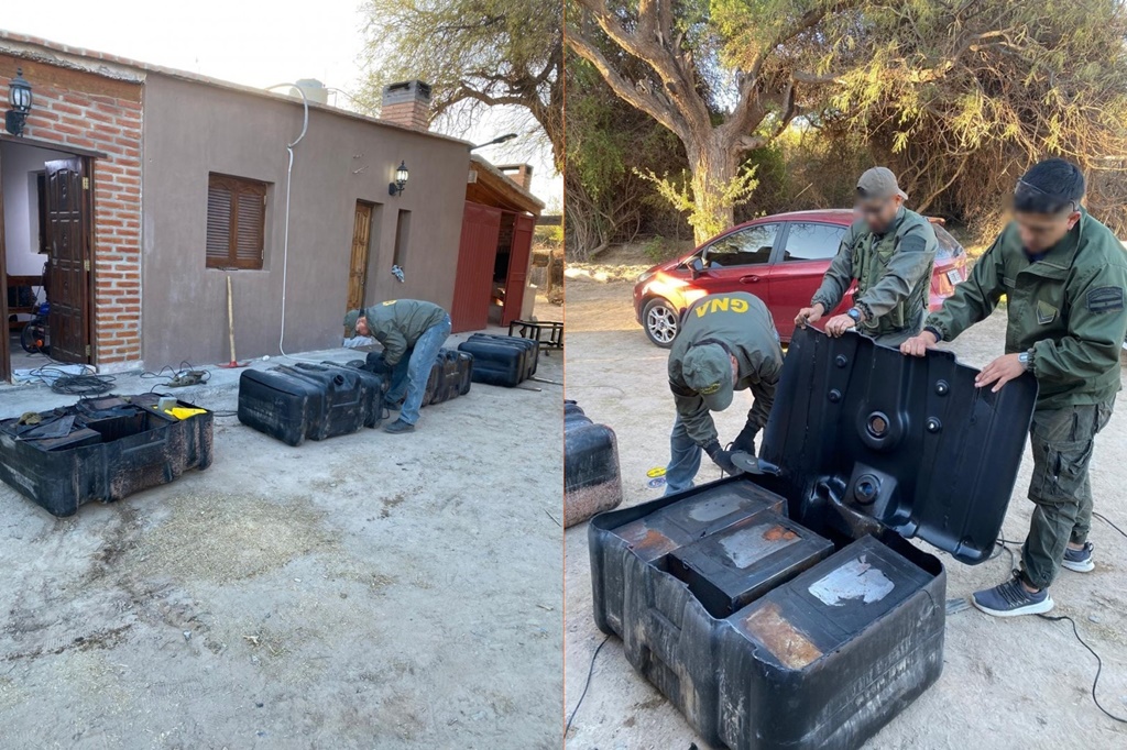Siguiendo con lo ordenado, los gendarmes allanaron el lugar mencionado en donde encontraron cuatro tanques de combustible. Al utilizar una herramienta, la colocaron en el orificio de carga del recipiente plástico y detectaron que poseía un contenido macizo.