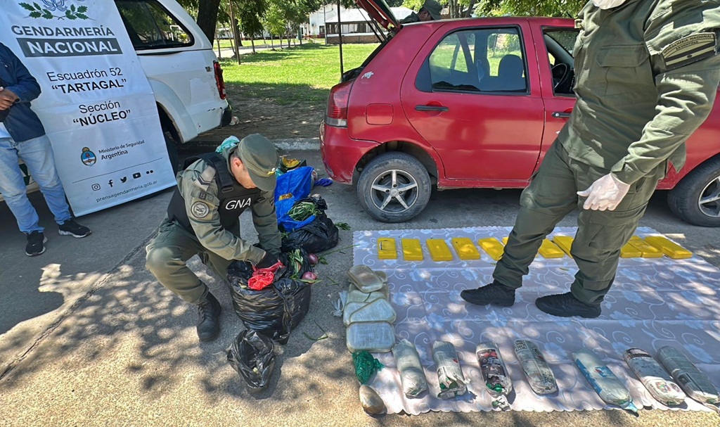 El primero de los procedimientos se concretó en el Paraje Cuña Muerta, sobre el kilómetro 1.437 de la Ruta Nacional N° 34. Allí, personal de la Sección Núcleo del Escuadrón 52 “Tartagal” interceptó un vehículo Fiat Palio que funcionaba como remis.