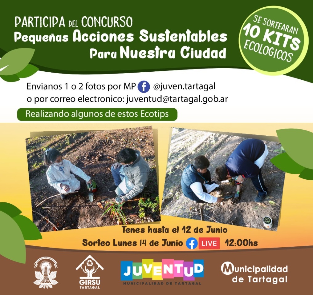 Con motivo de conmemorar el Día del Medio Ambiente; en fecha 5 de junio de cada año; la Coordinación de la Juventud y el área Girsu de la Secretaria de Producción lanzaron el concurso “Pequeñas Acciones Sustentables para nuestra ciudad”. El objetivo es compartir mediante imágenes con “eco-tips”; acciones caseras relacionadas al reciclaje, rehutilización y reducción de basura.
