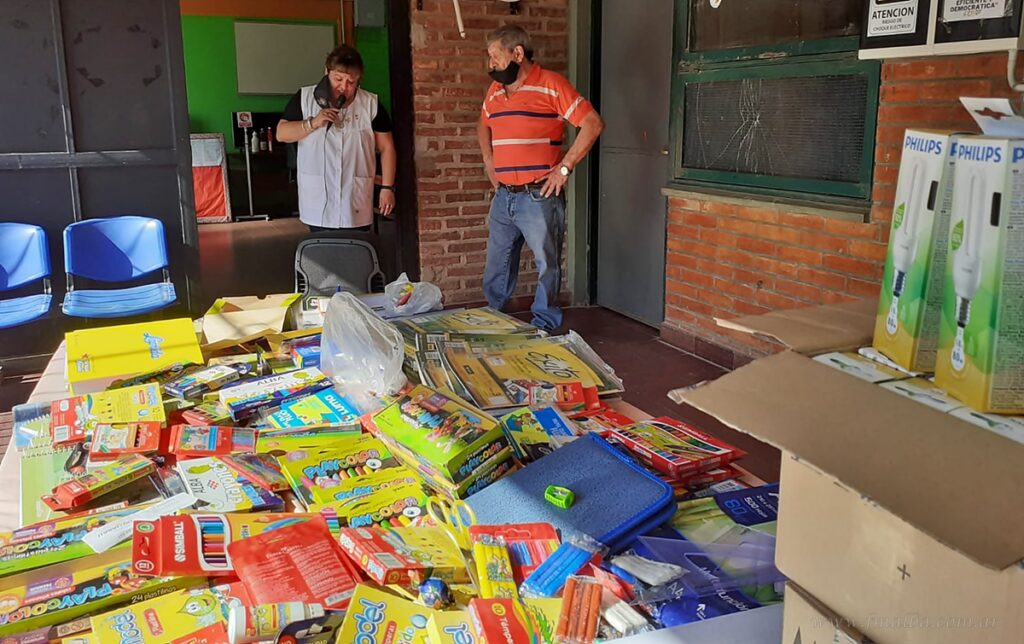 La directora de la Escuela San Isidro Labrador; María Arias; fue la encargada de recibir elementos electrónicos y una amplia cantidad de útiles escolares donados por firmas comerciales de la ciudad, de cara al inicio del Ciclo Lectivo 2021. El establecimiento, resaltó, sufrió nuevamente el robo de cables y lámparas, como también ataques vandálicos.