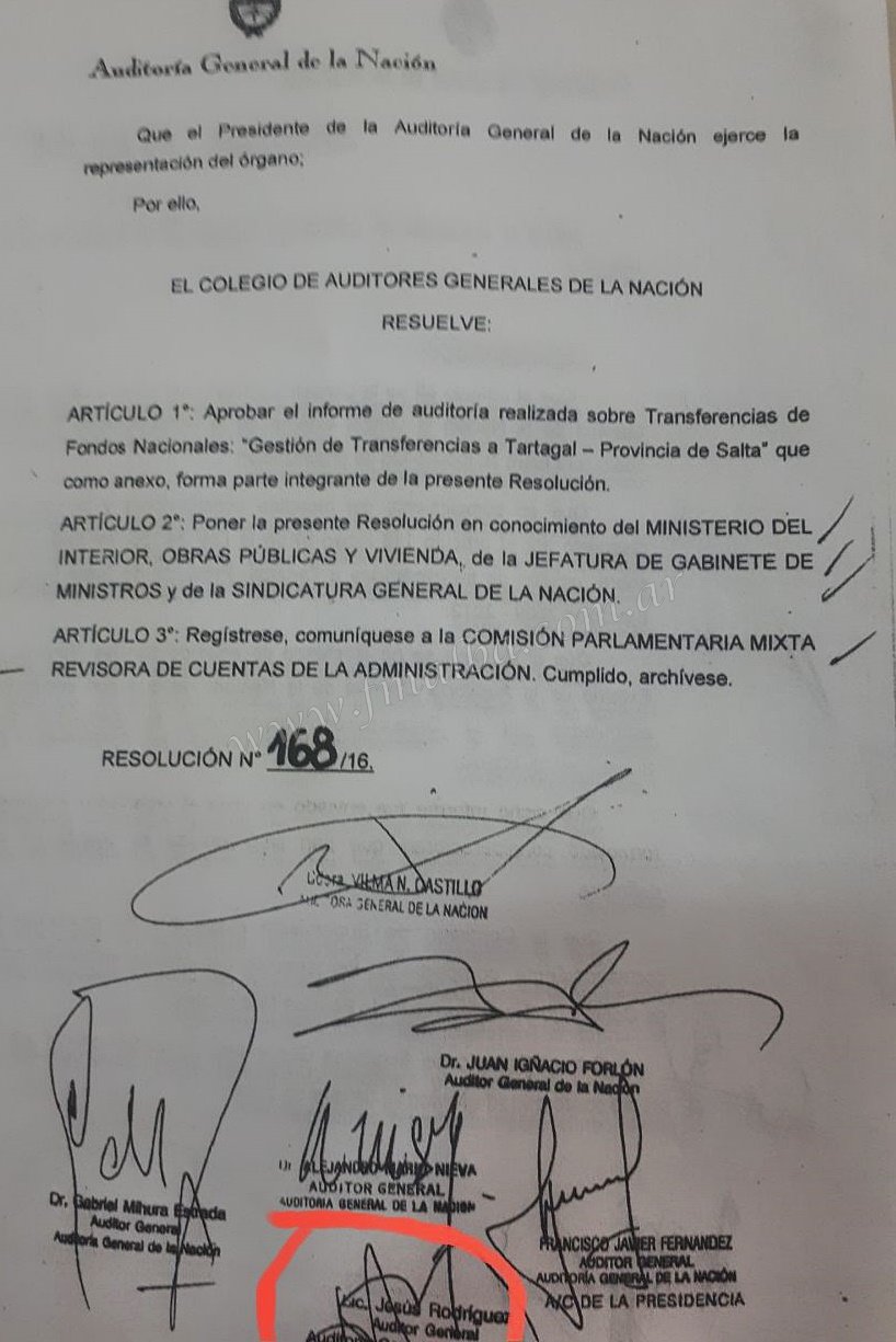 El Licenciado es auditor general de la Nación y llamativamente denuncia irregularidades en un balance que aprobó con su firma en 2016.