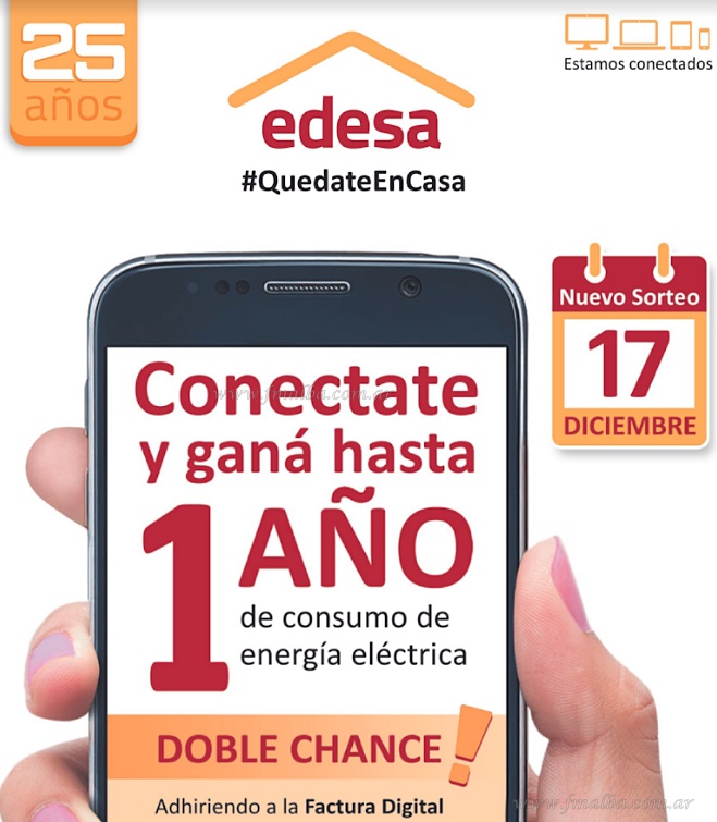 través de Resoluciones Nº 193/21 y 217/21, el 17 de Diciembre, Edesa realizará un nuevo sorteo de 15 premios que consistirán en un crédito equivalente a un año de consumo del servicio eléctrico, a ser aplicado en el suministro de titularidad del ganador y exclusivamente sobre los distintos ítems facturados en la boleta de servicio por cuenta y orden de Edesa SA. La nota de crédito se efectivizará en forma mensual a partir de la primera factura emitida con posterioridad al sorteo y hasta agotar el monto del crédito de treinta mil pesos o cumplidos los 12 meses de consumo, lo que ocurra primero.