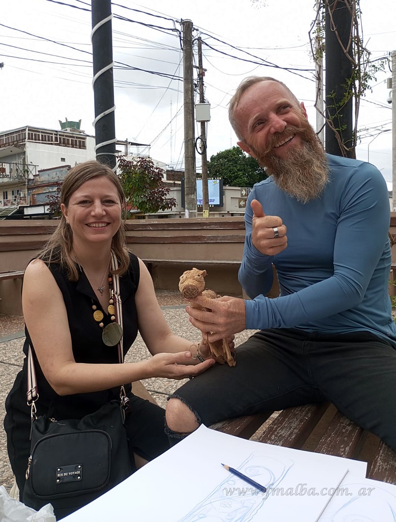 “Invito a toda la comunidad a que venga a conversar con los artistas y a experimentar este momento tan importante que están organizando”, concluyó Reolon, quien durante la entrevista ya se encontraba realizando los bocetos de lo que será su regalo artístico para Tartagal.