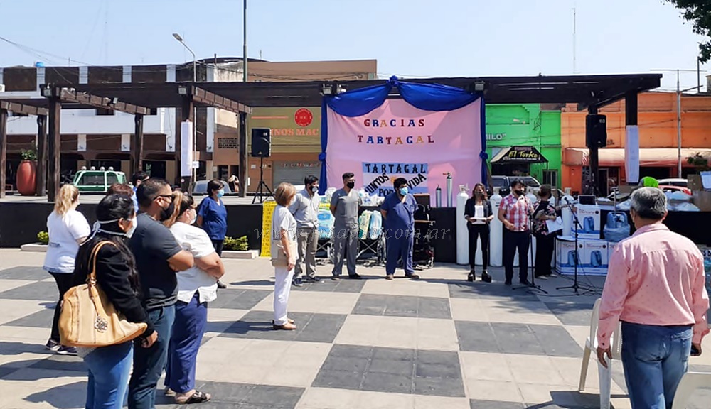 La campaña “Tartagal – Juntos por la Vida” destinó la suma millonaria que reunieron con aportes solidarios a la compra de tubos de oxígeno, recursos sanitarios varios y otros elementos que se distribuyeron entre el Hospital Público y los diferentes Centros de Salud. La entrega de cada una de las dotaciones se realizó este miércoles con acto en Plaza San Martín.