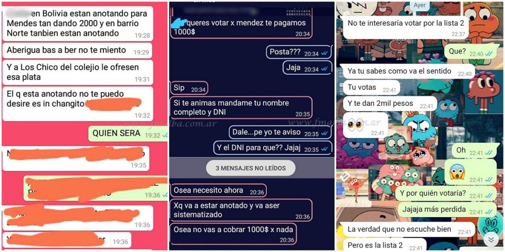 En esta oportunidad, se difundieron por medio de redes sociales captura de conversaciones donde se “negociaba” la “compra” de un voto a favor de la Lista 2 (Rubén Méndez) por un bono de 1.000 pesos; a lo cual se agregó que si un ciudadano boliviano se registraba para sufragar en Salvador Mazza recibiría un monto superior: 3.500 pesos argentinos. No obstante, el cambio que se maneja en frontera informa que el peso argentino cotiza a 0.0382 para la compra y 0.039 para la venta, según datos actualizados al 24 de julio.