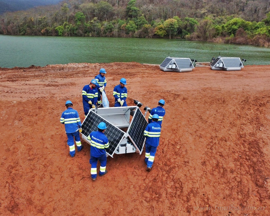 Dado el tamaño del embalse y el área a cubrir, se instalarán cinco sistemas MPC-Buoy que funciona con energía solar y combina: