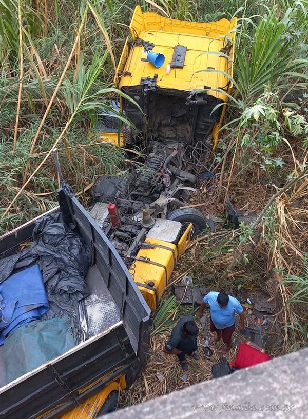 Un camión de gran porte; de nacionalidad paraguaya; cayó ayer miércoles desde el acceso sur en el puente carretero sobre Río Bermejo, a 5 km de Embarcación. El chofer resultó con golpes y heridas, manifestando que perdió el control del rodado al dar con un desnivel, que provocó la rotura del mástil del volante, pudiendo evitar caer de punta y hacerlo parado. Por la caída y el impacto, la cabina se desprendió. Fue auxiliado por personal del Ejército y trasladado al Hospital San Roque.