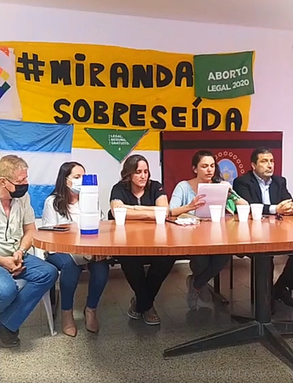 Tras el fallo del juez Luciano Martini de la Sala I del Tribunal de Impugnación de Salta, la Dra. Miranda Ruiz brindó una conferencia de prensa en compañía del abogado Oscar Guillén, la gerente del Hospital Zonal en Tartagal y referentes médicos. La médica fue sobreseída luego de haber sido procesada por haber garantizado un aborto legal en la ciudad de Tartagal.