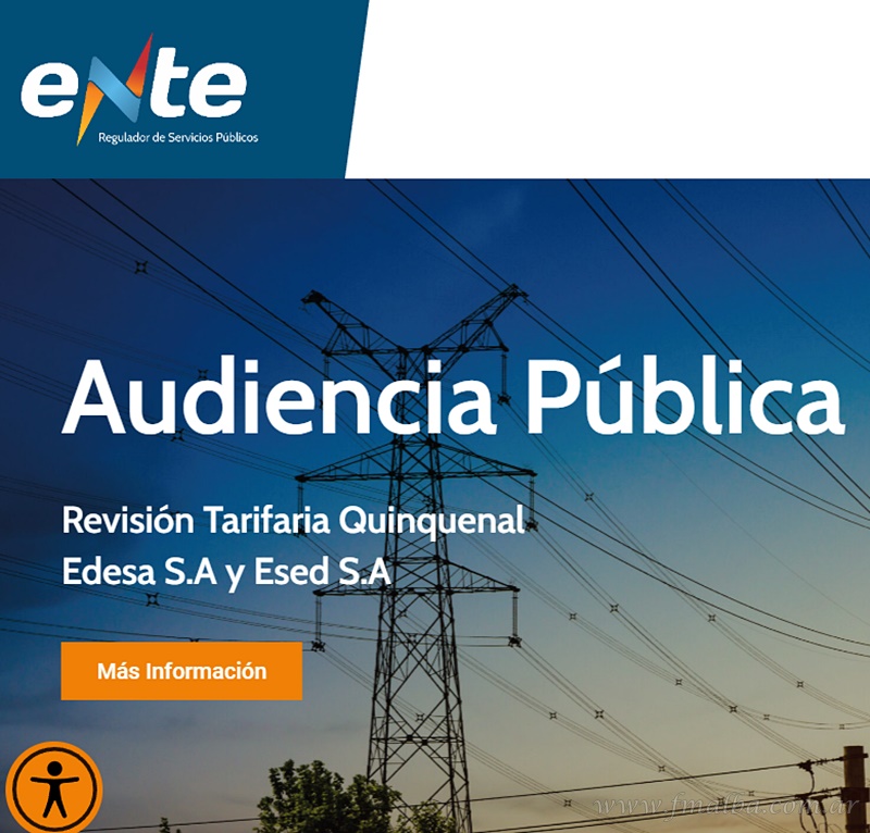 La última revisión tarifaria, tanto para Edesa SA como Esed SA, concluyó en 2017 (Resoluciones ENRESP N° 500/17 y N° 704/17). Ambas señalan el contexto inflacionario nacional como principal argumento, por lo cual el Ente dispuso que el Cr. Juan Lucas Dapena Fernández (Dr. en Cs. Económicas); Decano de la Facultad de Economía y Administración de la Universidad Católica de Salta; participara del proceso de revisión tarifaria. La audiencia se transmitirá vía “streaming” a través de un link a publicar en la web del Ente, como mínimo, siete días antes del 17 de Agosto.