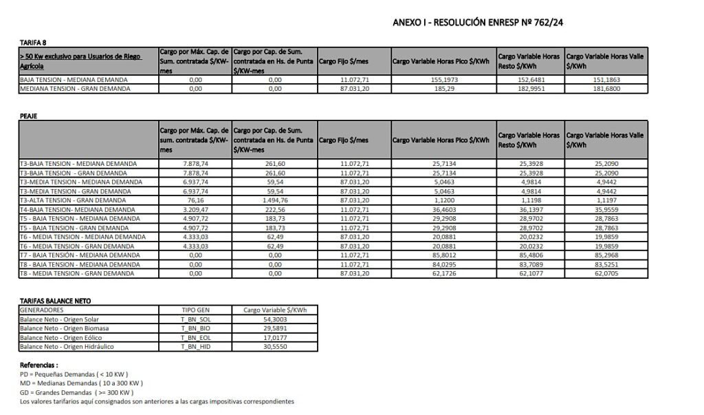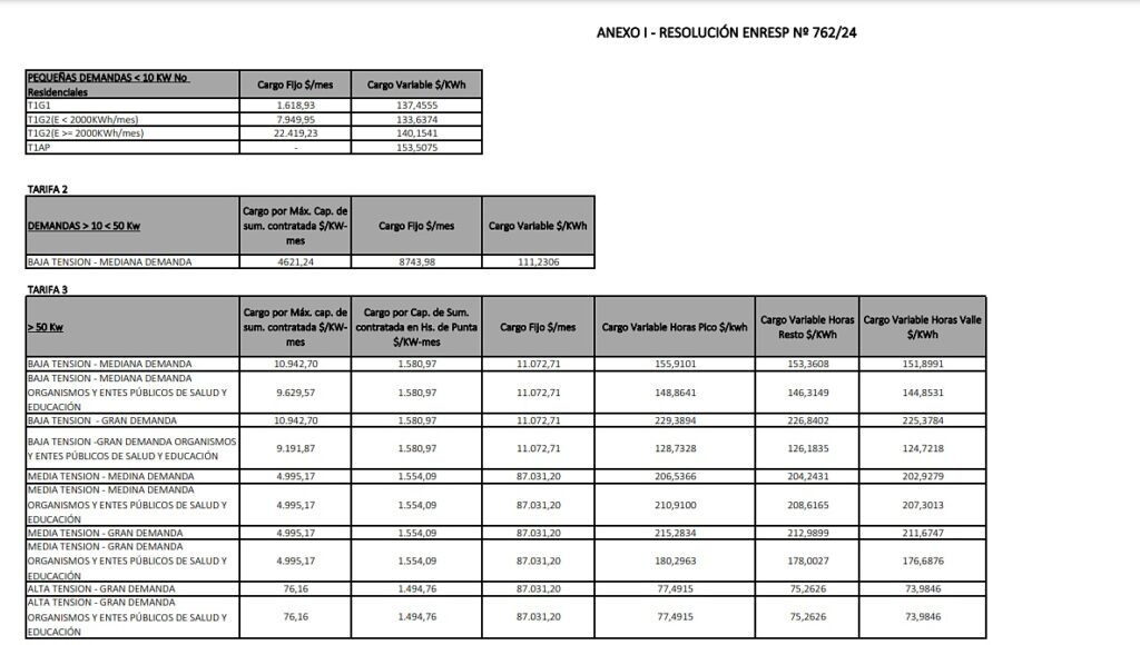 En la resolución compuesta por 9 artículos, el Ente establece el adecuar la tarifa a lo que determina el Decreto de Necesidad y Urgencia n° 55/23 y el Decreto 465/24 (Nación), y la Resolución 90/24 de la Secretaría de Energía de la Nación, en base a los siguientes principios: