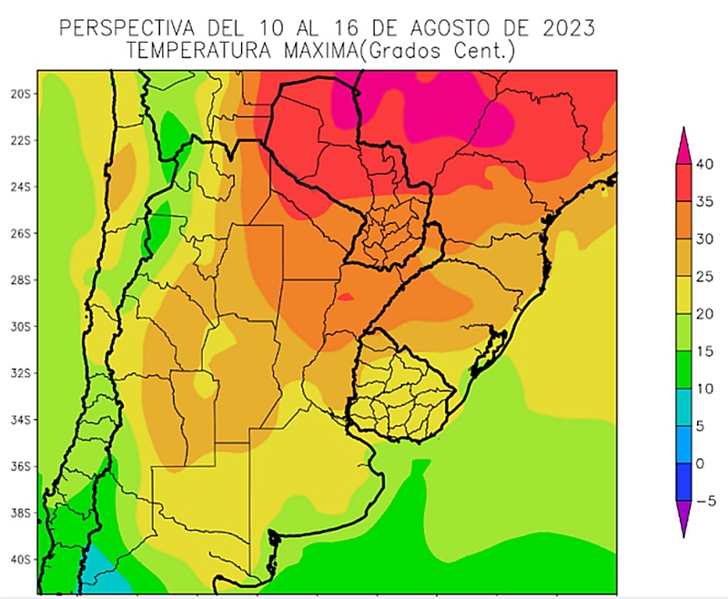 . Para la región se anticipan valores por arriba de los 25 grados, pudiendo llegar a los 30 y 35 grados. En cuanto a lluvias, la región continuará sin precipitaciones. El SMN prevé que éstas continúen reducidas a la región centro y pampeana, como también el norte patagónico; incluso la probabilidad de fuertes tormentas.