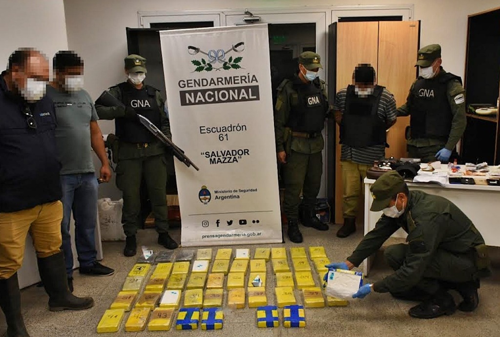 El análisis reveló la existencia de tres cajas de distintos tamaños ocultas entre los 22.000 kilogramos de fruta. En su interior, los gendarmes hallaron 48 paquetes rectangulares que contenían un total de 50 kilos con 46 gramos de cocaína, cuidadosamente acondicionados para pasar inadvertidos.