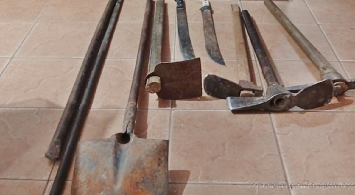 En el lugar donde fueron soprendidos secuestraron diversas herramientas, entre palas, picos y elementos de interés para la causa, en que interviene la Fiscalía Penal de Tartagal.