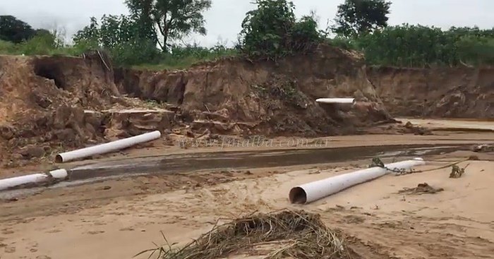 General Mosconi denunció la pasada semana que se rompió la cañería de desagüe en el sector de arroyo El Gritón debido a las fuertes lluvias.