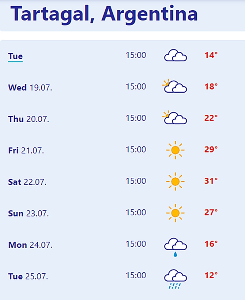 »Pronóstico extendido para la semana en Tartagal, Salta (Imagen: captura de pantalla)