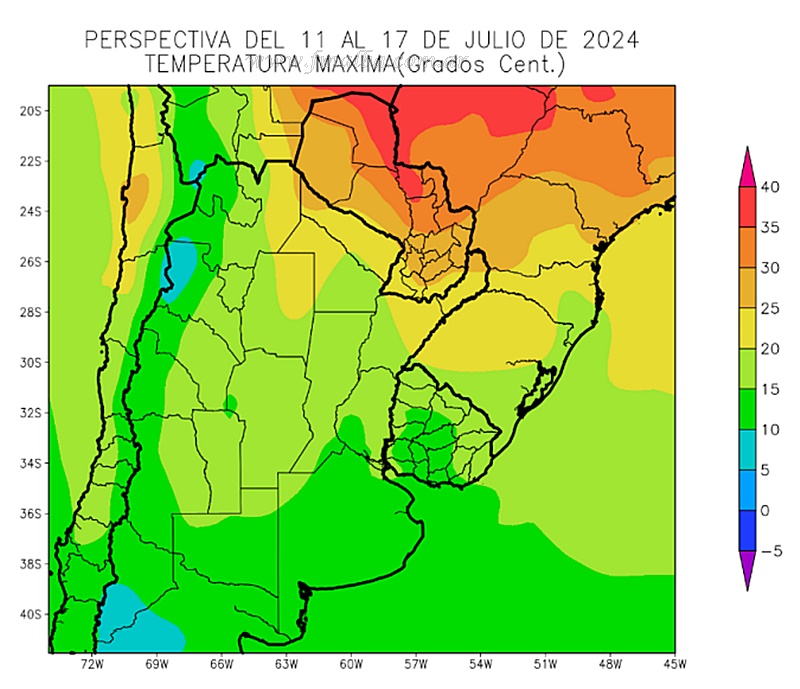 El informe previo del Servicio Meteorológico Nacional estima que la semana próxima, la llegada de vientos del trópico elevarán las temperaturas máximas por sobre lo normal, impactando solamente en el extremo norte del país; sin llegar a las regiones centro y el sur, que continuarán con registros bajo la media estacional. El desplazamiento progresivo de un centro de altas presiones en superficie irá promoviendo el retorno de viento norte a buena parte del centro y norte del país, motivando el tenue ascenso térmico. El buen tiempo seguirá instalado bajo condiciones de tiempo soleado mayormente.