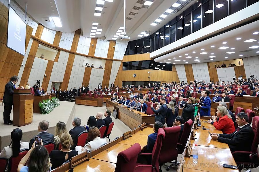 >>Javier Milei fue recibido por autoridades de los poderes Legislativo y Judicial (Crédito imagen: prensa paraguaya)