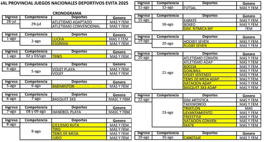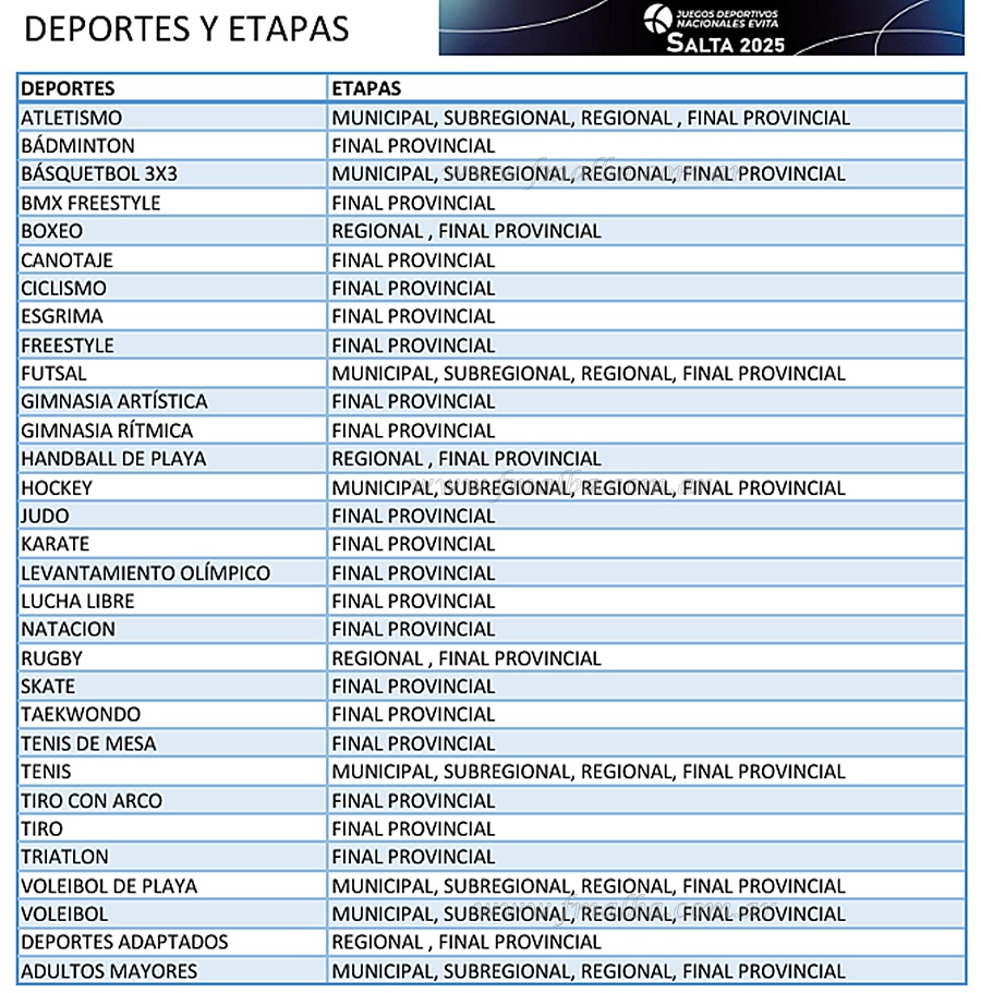 El calendario Juegos Evita Edición 2025, Sede Salta transitarán la etapa del Sub Regional hasta el 11 de julio divididos en siete regiones: