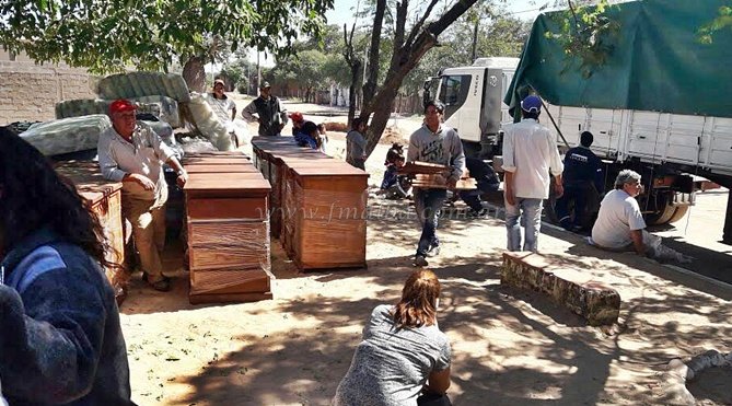 Las comunidades de El Algarrobito y Fortín Dragones recibieron colchones, almohadas, sábanas, acolchados, colchas, mesas y sillas, modulares y escritorios, además de tanques de agua.
