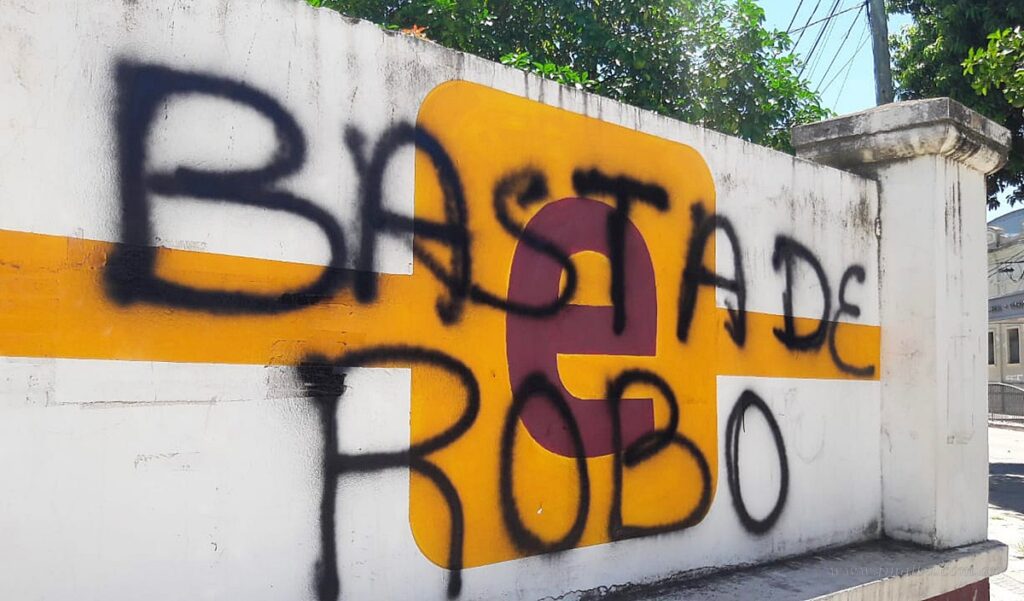 »Pintadas y huevos arrojados a la oficina de Aguas del Norte (Imagen: Marcelo Machaique)