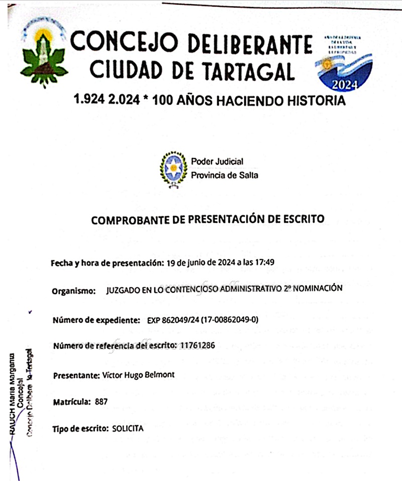 El expediente finalmente volvió a Comisión de Legislación, por voto de la mayoría. Rauch enfatizó que “el hacer mal las cosas y que en cuestiones de forma jurídica y administrativa pueden significar para los tartagalenses tener que salir a cubrir de nuevo una demanda millonaria por no cumplir con las formas (…) como el caso de un cargo que no está vacante es llamado a concurso“, punto que expuso en la última sesión del Concejo Deliberante y en referencia al llamado para cubrir el cargo de Juez del Tribunal Administrativo de Faltas y Contravenciones.