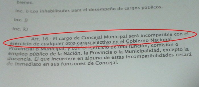 “Entiendo que el artículo 16 (de la Carta Municipal) habla de la incompatibilidad de cargos (con la excepción que se refiere al cargo de concejal) y ellos (el oficialismo) han sido claros al hablar de Licencia con supresión de Ejercicios, como diciendo que al estar suspendido el ejercicio no habría incompatibilidad”, estimó.