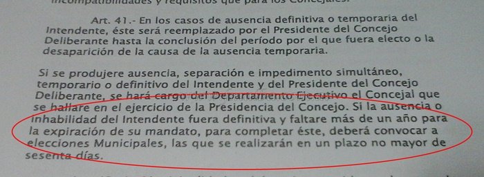 Junto con los dos temas que ocuparán la agenda política en el cierre del año, también sumó su mirada a la cuestión de cefalía en el Municipio, punto que se plantea en el artículo 41 de la Carta Orgánica. El intendente Leavy solicitó una licencia de un año y cinco días, lo que para Mimessi significa que “se quiere evitar las elecciones (a Intendente) en Tartagal”.