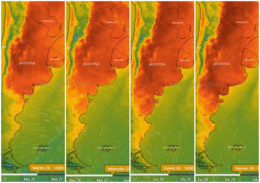 No obstante, desde el lunes 25 en adelante las marcas comenzarán a subir y sobre la región este del NOA, oeste del Chaco, norte de Córdoba, y la