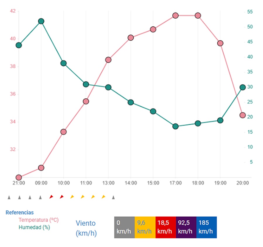 Este domingo 2 de febrero, las marcas térmicas más altas se registraron en Chaco, Formosa y Salta, como también Catamarca, San Juan y sobre todo La Rioja. En el caso de Las Lomitas (Formosa), la máxima fue de 40.4 °C; mientras que en La Rioja Aero se registró 41.8 °C el domingo por la tarde. El gobierno salteño y Defensa Civil recomiendan consumir abundante agua (fresca, no fria o helada) aunque no se sienta sed, proteger la cabeza con sombrero o gorra, usar ropa clara y liviana y evitar realizar actividad laboral o deportiva bajo el sol en las horas de mayor intensidad, como también utilizar protector solar para prevenir quemaduras y usar lentes oscuros de buena calidad, para evitar daños en los ojos.