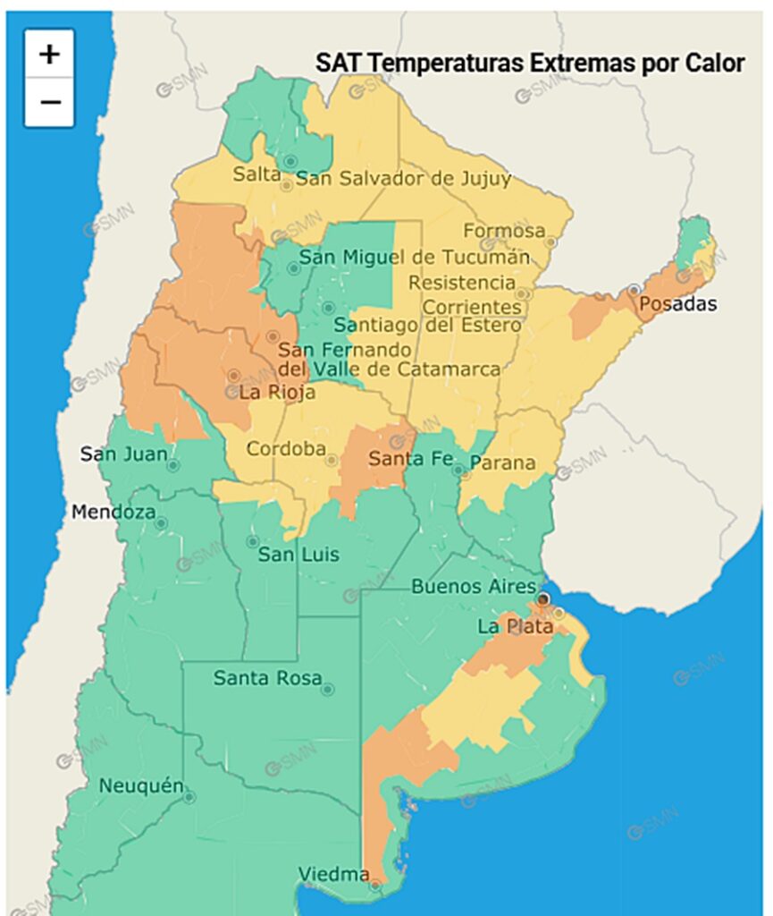 El Servicio Meteorológico Nacional actualizó los informes de alerta por altas temperaturas, mismas que cubren las provincias de Salta, Formosa y Chaco a pleno en el norte argentino. El organismo estima marcas que rondarán los 38 a 4o grados, de manera que el Gobierno Provincial emitió una serie de recomendaciones a la ciudadanía. Hacia el fin de semana se prevé la llegada de un frente frío con lluvias y tormentas que provocará el descenso de las temperaturas.
