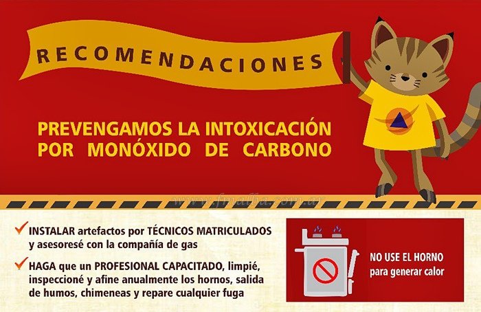 El organismo instó a controlar que los aparatos a gas en el hogar funcionen correctamente y sin fugas; tarea que solo un profesional instalador debe realizar. Se recomienda no utilizar hornos de cocinas a gas para calefaccionar el hogar y en su lugar usar estufas de tiro balanceado.
